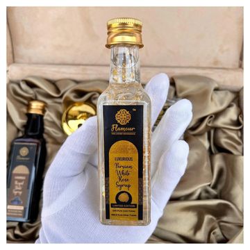 Experience pure luxury with our 100% Natural and Premium Saffron Syrup infused with 24K Gold and Silver. Indulge in the rich flavor and aroma of saffron, known as "Kesar," and discover its numerous benefits. Elevate your culinary creations and immerse yourself in the opulence of this exquisite syrup. Discover the perfect blend of luxury and wellness.